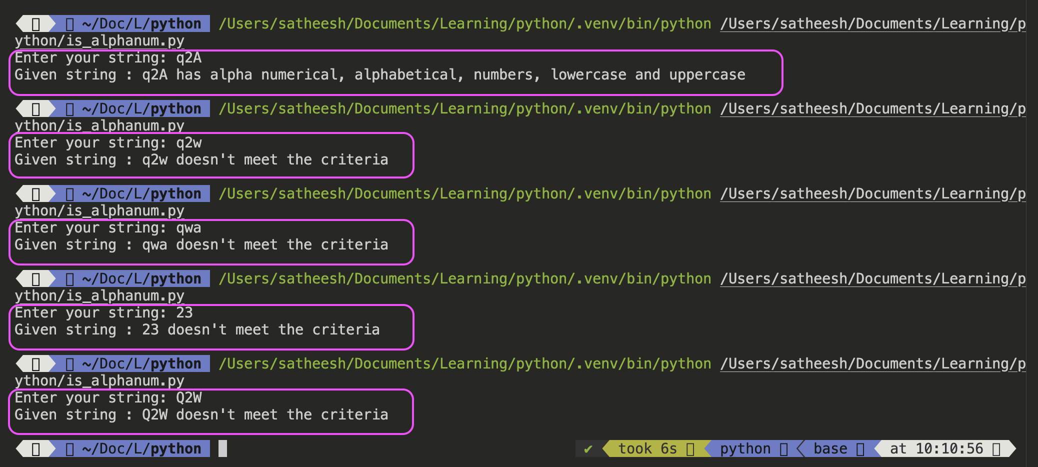 print(f"Given string : {given_string} has alpha numerical, alphabetical, numbers, lowercase and uppercase")