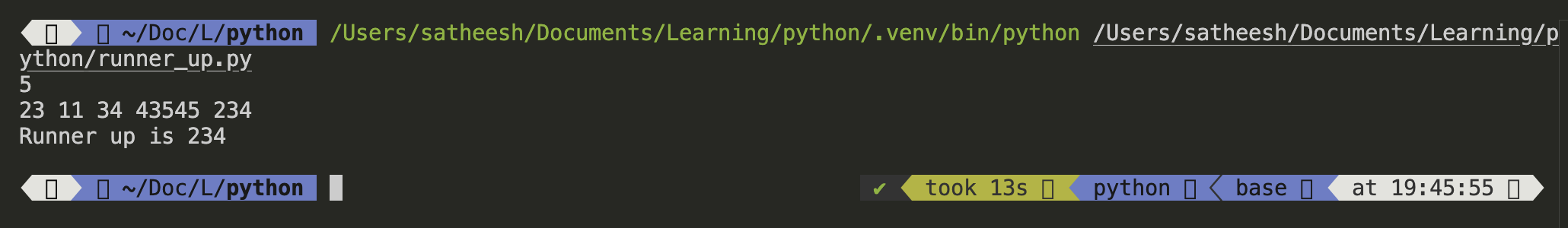# 5. Compare first two values and if it is not equal, then second last number is the runner up. Else, continue the loop