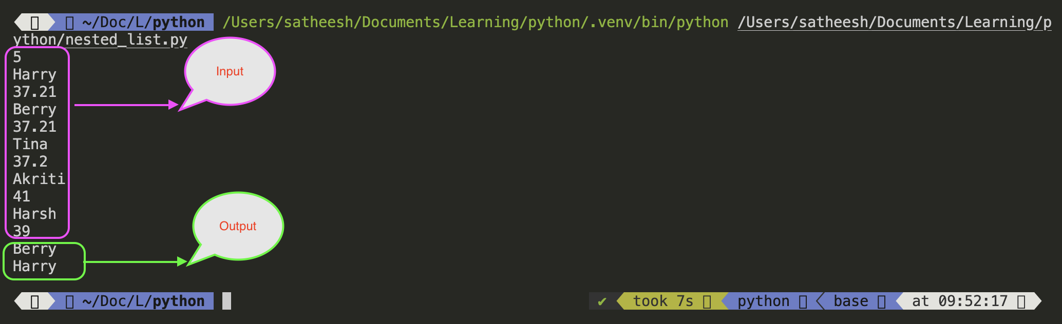 Given the names and grades for each student in a class of N students, store them in a nested list and print the name(s) of any student(s) having the second-lowest grade.